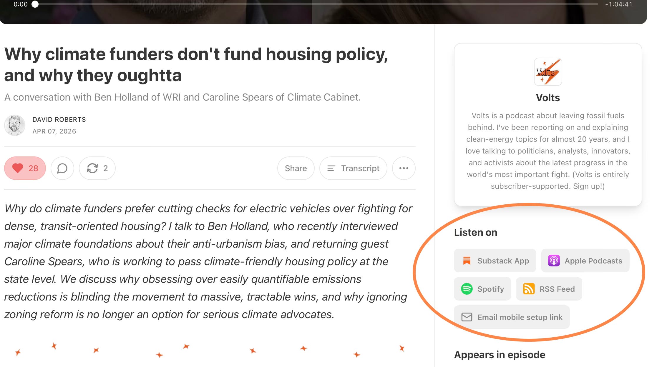 Go to any one of the podcast pages on volts.wtf (say, this one) via browser.