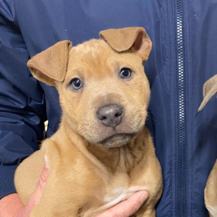 We called to explain that to the rescue and they said, sure, fine, you can cancel those applications, but what about this new puppy we just got? We have no room for him and we're currently paying someone off of Rover.com $60 a day to board him. We're a little desperate, could you just watch him for a while? Foster him until we can find him a home? He was born in October and rescued off the streets of eastern Washington last week.