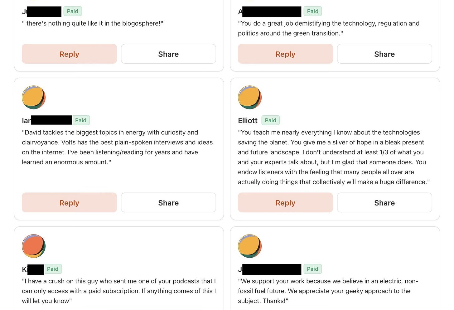 🗣️ A big shoutout to the top 10 commenters (by quantity), you’ve been integral to building Volts: John S, Suz C, Peter W, Steve B, Jerry W, Fred P, Auros, Bob W, Geoff S.