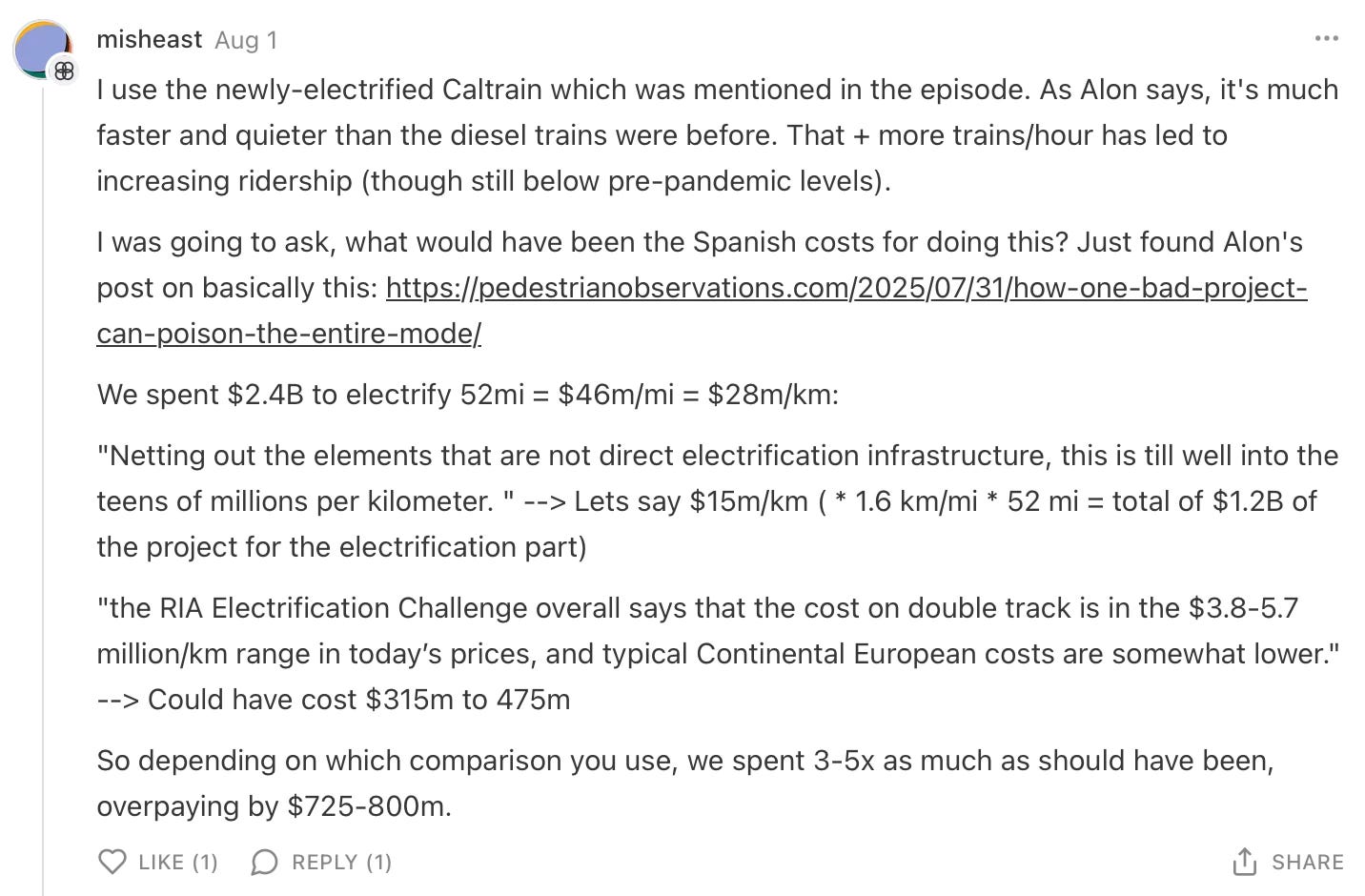5. ✅ Community comment of the month from misheast, who helps explain why Spain can have nice things and we can’t:
